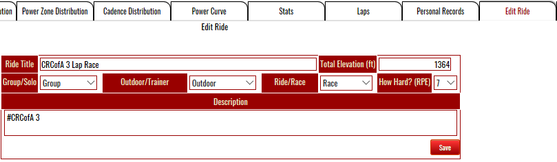 You provide a Start Date and an End Date to limit the rides you want to report on. Additionally, you can enter in a Tag to further limit the rides returned by the search. The system will attempt to match the tag on a "contains" basis in the Description column of a ride. The corresponding Description textarea is found on the Edit Ride tab of each ride page.