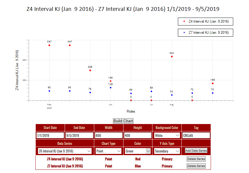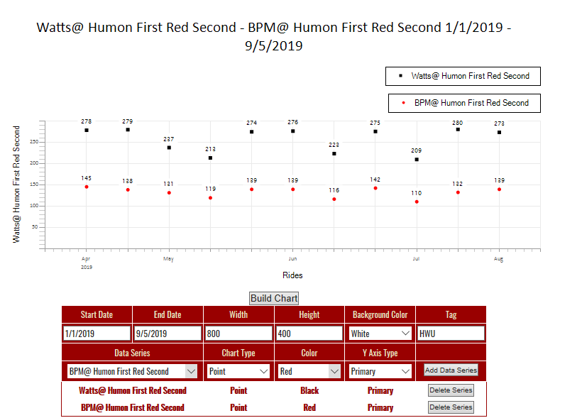 Here's an example of a chart that's displaying all the Humon threshold tests for 2019: